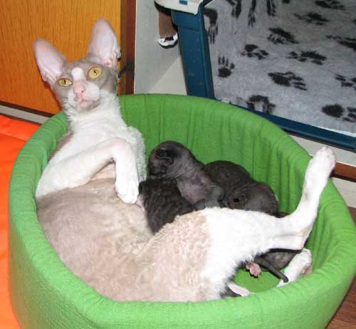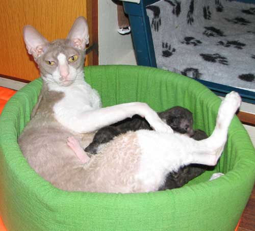 Rytmis'& Reiska's kittens, born 23 July 2006. Photos are taken 2 August, so kittens are 1,5 weeks old.