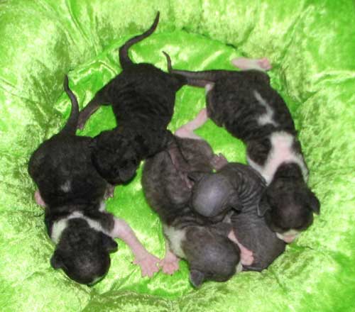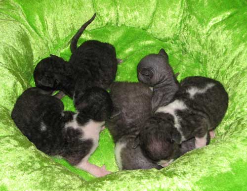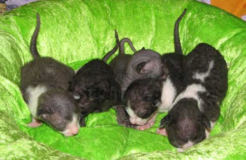 Kuvissa pennut 11 päivän ikäisiä. Pennut olivat syntyessään tosi pienet, vain 64 ja 68 g, joten ovat kovasti ikäistään nuoremman näköiset. Kasvavat kuitenkin reippaasti ja ovat oikein pulleita vauveleita. Pentujen äiti ei oikein viitsinyt keskittyä rääpäleiden hoitoon, joten pennut ovat "varaemon" Hyrrän hoivissa, jonka omat pennut ovat viikon verran nuoremmat. Kuvat ©Piupaws