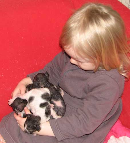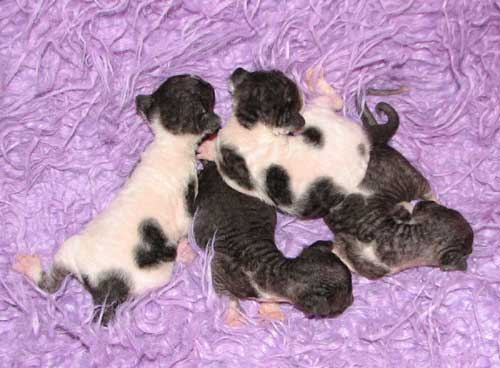 Vinkun ja Elliotin pennut, syntyneet 20.3.2007. Kuvissa pennut ovat neljän päivän ikäisiä.