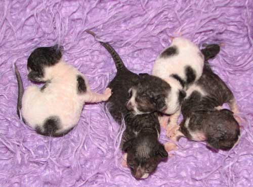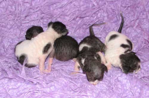 Vinku's & Elliot's kittens, born 20 March 2007. In the photos kittens are four days old.