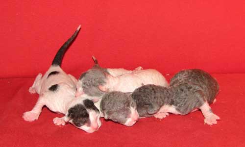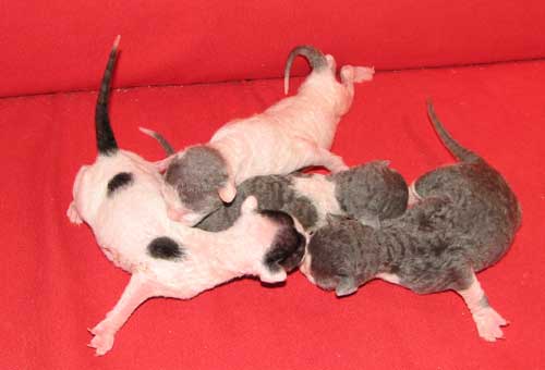 Vinkun ja Nabin pennut, syntyneet 11.10.2006. Kuvissa pennut muutaman tunnin ikäisiä.