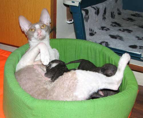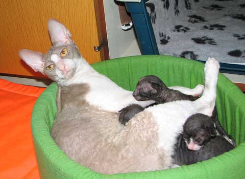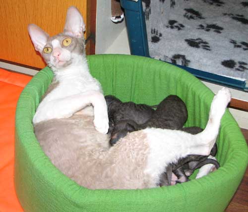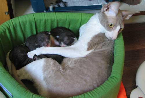 Rytmis'& Reiska's kittens, born 23 July 2006. Photos are taken 2 August, so kittens are 1,5 weeks old.