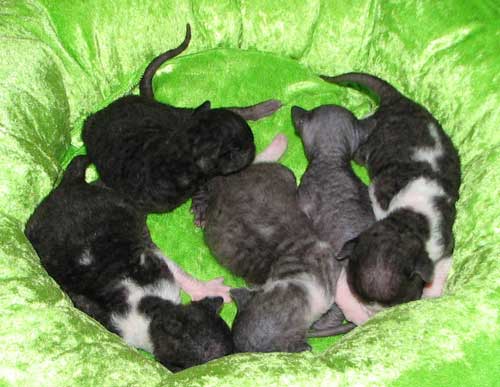 Kuvissa pennut 11 päivän ikäisiä. Pennut olivat syntyessään tosi pienet, vain 64 ja 68 g, joten ovat kovasti ikäistään nuoremman näköiset. Kasvavat kuitenkin reippaasti ja ovat oikein pulleita vauveleita. Pentujen äiti ei oikein viitsinyt keskittyä rääpäleiden hoitoon, joten pennut ovat "varaemon" Hyrrän hoivissa, jonka omat pennut ovat viikon verran nuoremmat. Kuvat ©Piupaws