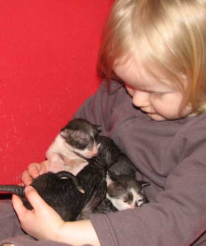 Vinku's & Elliot's kittens, born 20 March 2007. In the photos kittens are four days old.