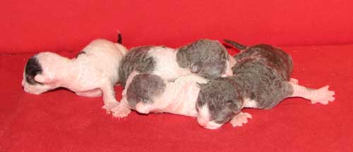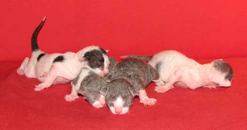 Vinkun ja Nabin pennut, syntyneet 11.10.2006. Kuvissa pennut muutaman tunnin ikäisiä.