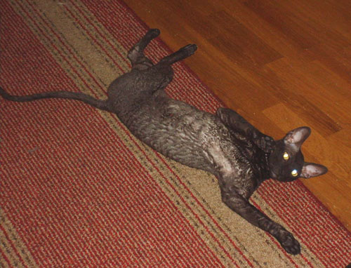 Sulo on hieman erikoinen persoona, hän ei erityisesti pidä vieraista ihmisistä. Sulosta näkyy lähinnä musta viuhahdus, kun hän kiitää sohvapeiton alle piiloon. Oman perheen kanssa Sulo on nimensä mukaisesti suloinen. Ulkonäöltään Sulo on ihan kelvollinen. Turkki on kunnossa, mutta muuten hänessä voisi olla kaikkea vähän enemmän. Valitettavasti Sulo on tapaturmaisesti murtanut koko häntänsä keskeltä poikki. Onneksi sitä ei tarvinnut amputoida ja häntä toimii normaalisti vaikka onkin virheasennossa. |